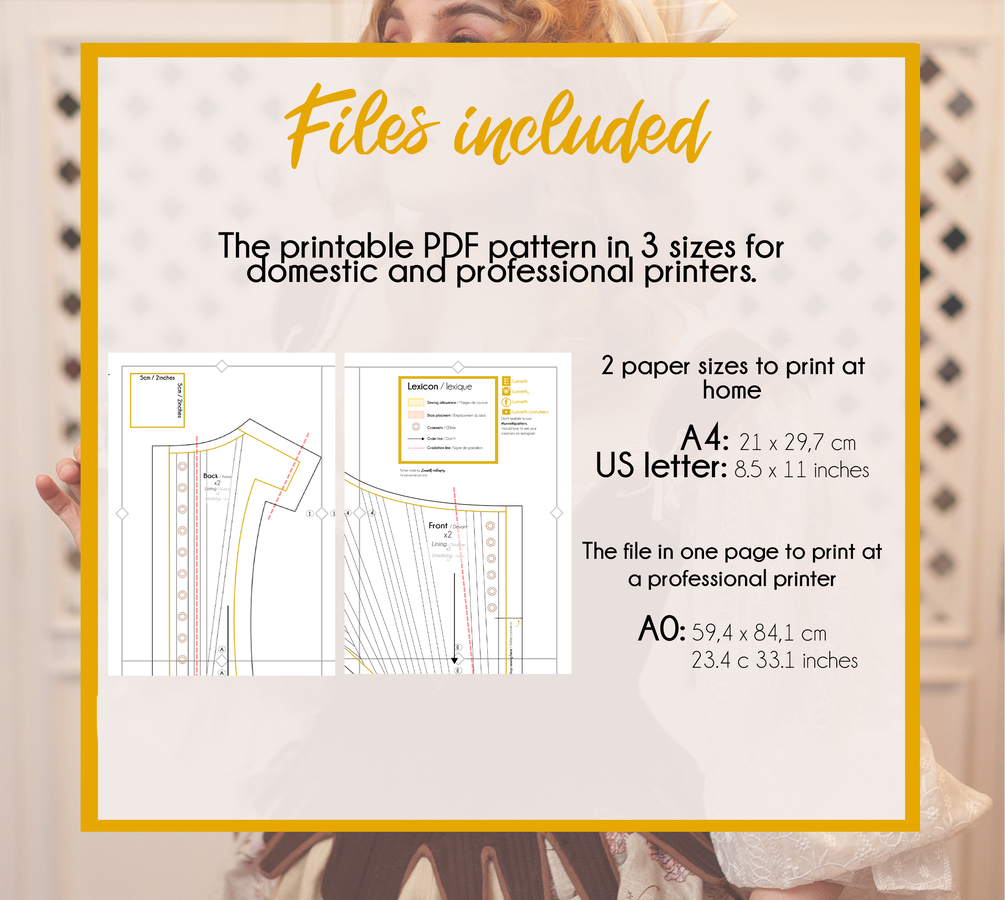 - 3 PDF of the pattern to print at home (A4 or US letter size) or with a professional (A1 size)